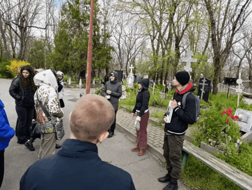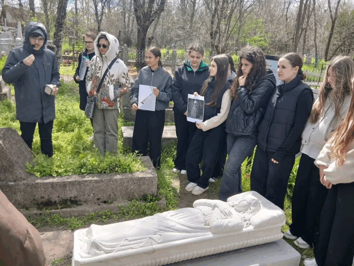 ☑ В ходе экскурсии школьники изучили ограждение и панно у ворот, элементы старинной кладки, ключевые объекты: мавзолей Ф.Д. Котопули, надгробие Хрисанфи Михалициано, захоронения Андреевых-Туркиных и Комнино Варваци.